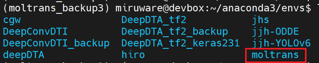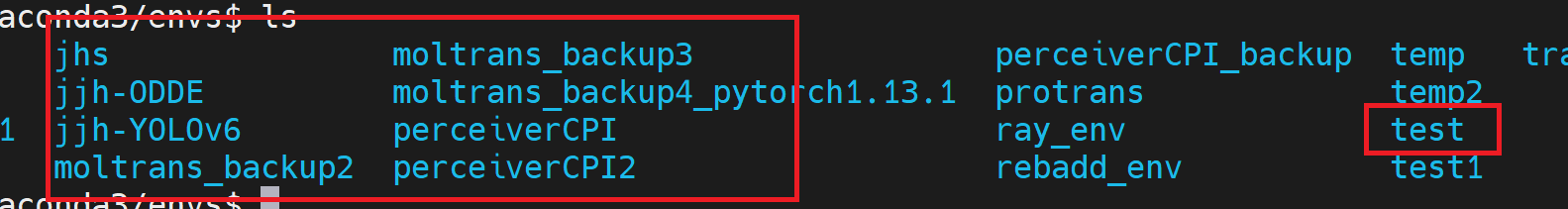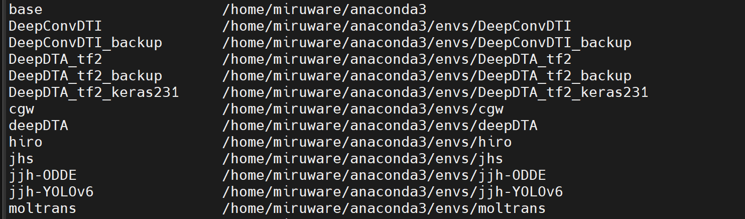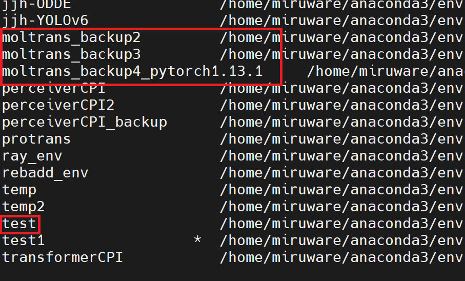 이제 다시 conda env list를 확인해보면 moltrans 가상환경의 이름이 test로 바뀐 것을 볼 수 있다.