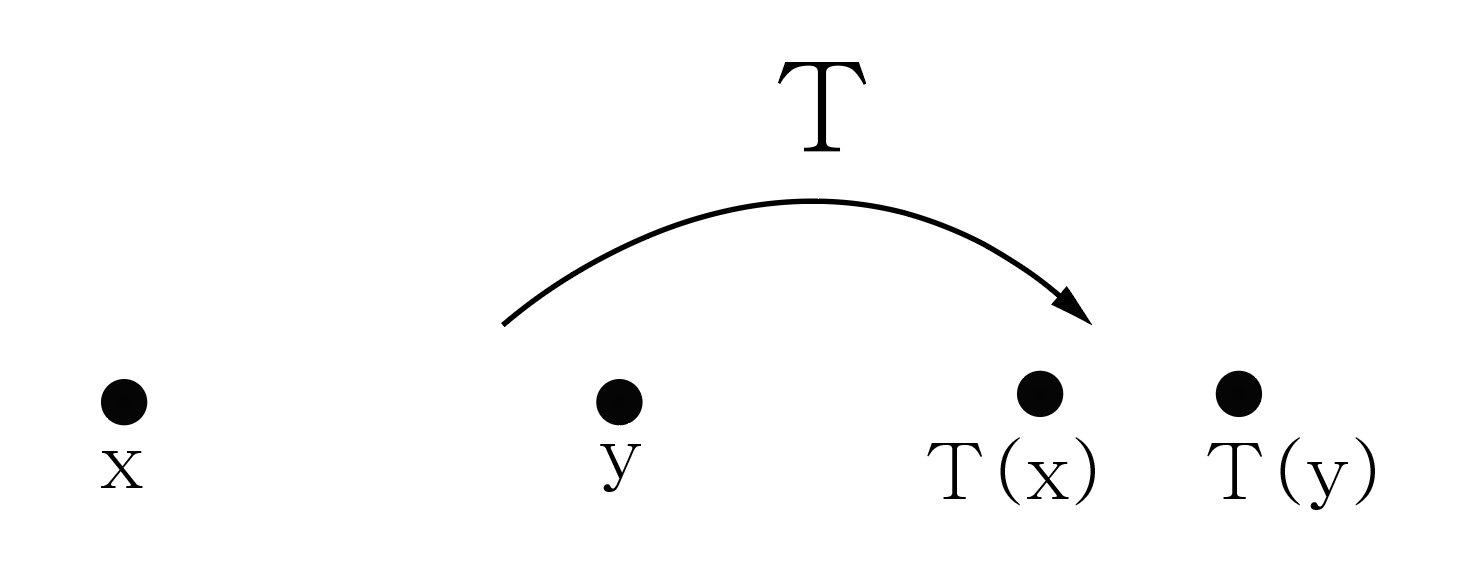 이제 임의의 함수 T : R → R을 생각하자. 이때 함수 T는 임의의 점 x와 y에 대해 다음의 성질을 만족하는 함수여야 한다.