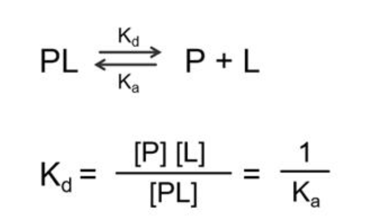 즉, Kd값이 클수록 [P]와 [L]의 Binding Affinity는 작다, 반대로 Ka값은 클수록 Binding Affinity가 크다는 것을 알 수 있다.