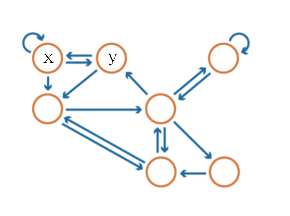 Transition probability(T)는 임의 state x와 y가 있다고 할때, state x에서 state y로 진행될 확률을 의미하고 T(x|y)로 나타낸다. 다음과 같은 Markov Chain이 있다고 생각하자.