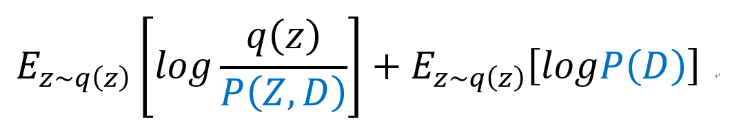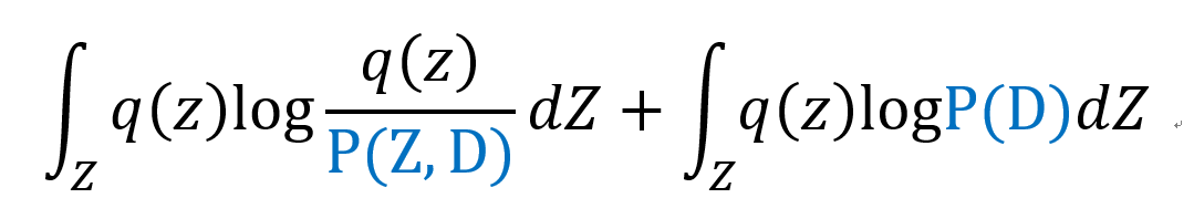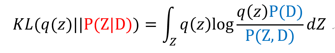 이제 KLD를 우리 문제에 맞게 q(z)와 P(Z|D)에 적용해보면 다음과 같은 식이 된다.