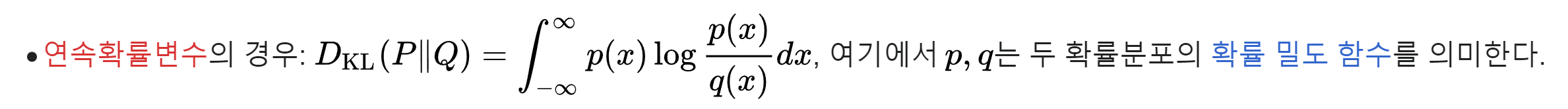 - 두 Distribution이 다르면 다를수록 KLD값은 증가한다. [0, ∞)