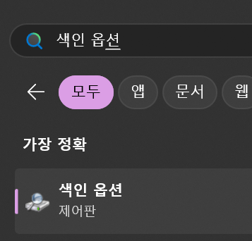 1. 윈도우 서비스탭에서 windows search 재시작