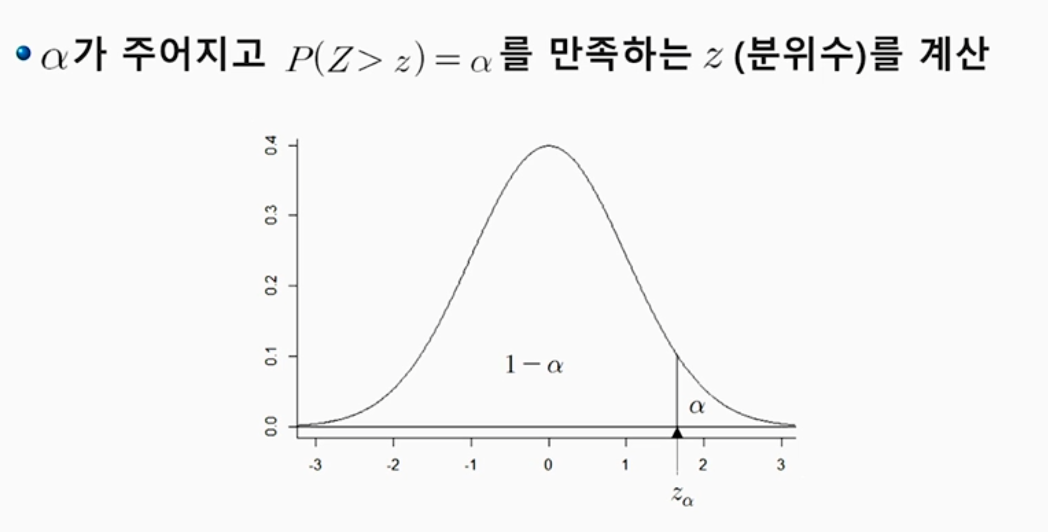 반대로, 면적값(α)을 주고 이때의 z값(분위수)을 계산하는 형태로도 생각해 볼 수 있겠다.