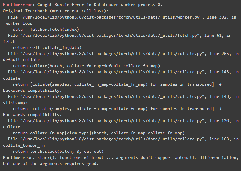 [이왜안?] RuntimeError: stack(): functions with out=... arguments don't support automatic differentiation, but one of the arguments requires grad.