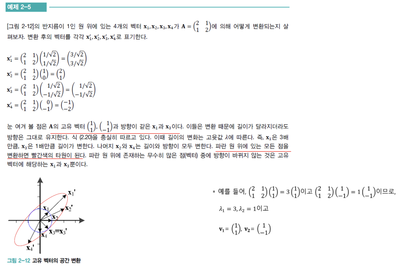 3. 고유 벡터에 어떠한 스칼라곱을 하여 변환하더라도 그 고유 벡터의 고윳값은 변하지 않는다.