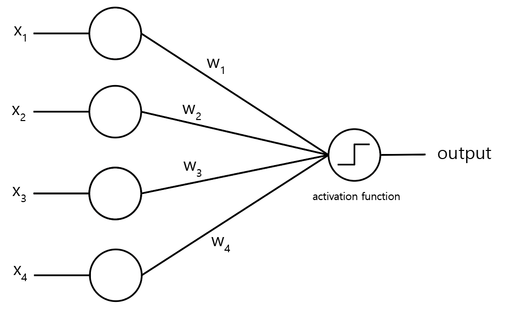 퍼셉트론의 입력 및 출력 방식은 다음과 같다.