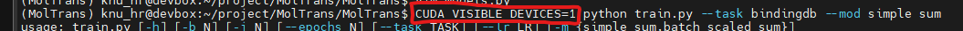 6. 다음과 같이 파이썬 실행 커맨드 앞에 CUDA_VISIBLE_DEVICES=사용할 GPU number 명령어를 추가하여 실행한다.