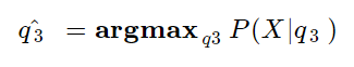 지금은 특정 매개변수 q3에 대해 추정하고 있지만, 문제 (c)처럼 추정해야 하는 매개변수 집합은 언제든지 달라질 수 있으므로 일반화하여 최대우도추정을 식으로 나타내면 다음과 같다.