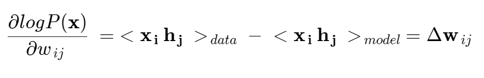 RBM의 가중치 변화량은 다음과 같이 대조 발산을 통해 계산한다.