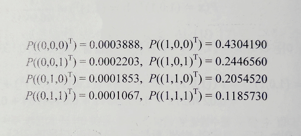 예제를 통해 우리는 현재 상태의 RBM에서 각각의 가시노드 발생 확률P(x)를 다음과 같이 구할 수 있었다.