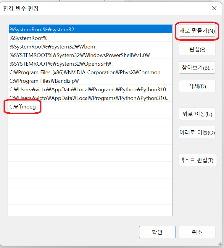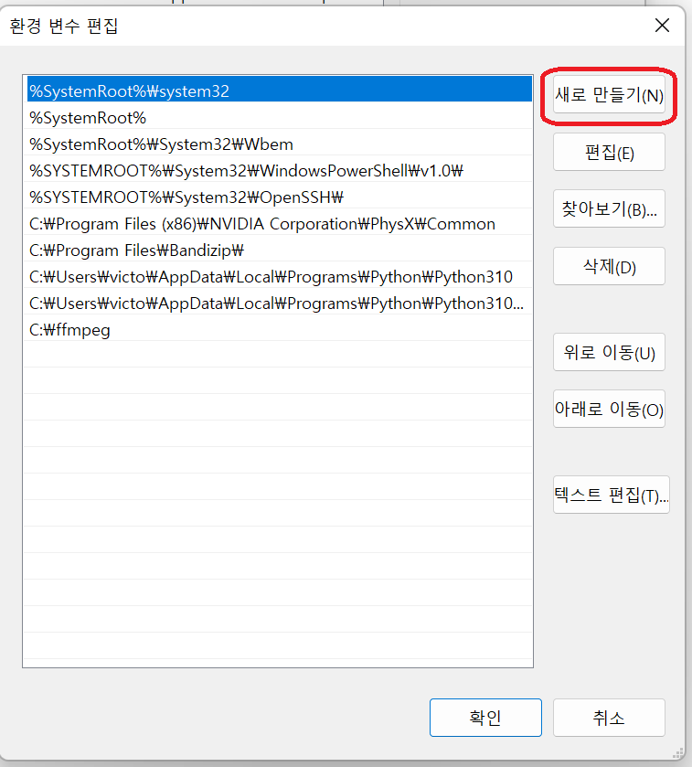 다운로드하고 따로 건드릴 것 없이 설치하고, ffmpeg때 했던 것 처럼 설치된 폴더 경로 찾아서 환경변수에 등록해준다.