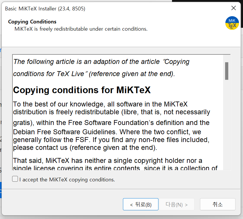 다운로드 하고 따로 건드릴 것 없이 다음 다음 눌러서 설치한다. 설치 메뉴얼에는 이걸 basic모드로 설치하면 추가로 뭘 더 해줘야 된다고 나와있긴 한데, 현재까지는 크게 문제없이 Manim library가 잘 돌아가고있어서 그냥 basic 모드로 설치하는게 원활한 것 같음, Full version으로 설치하려고 하니 다운로드도 오래걸리고 뭔가 불편하다. (환경변수 등록 필요없음)