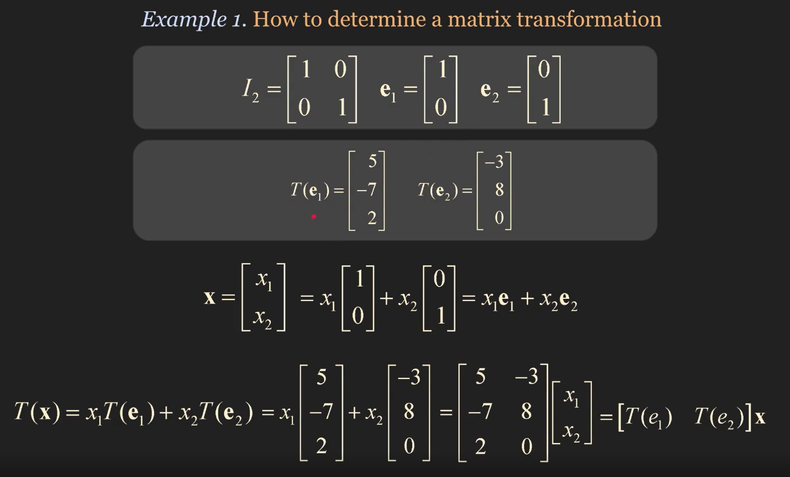 이때 A는 [T(e1) T(e2) ... T(en)]이다.