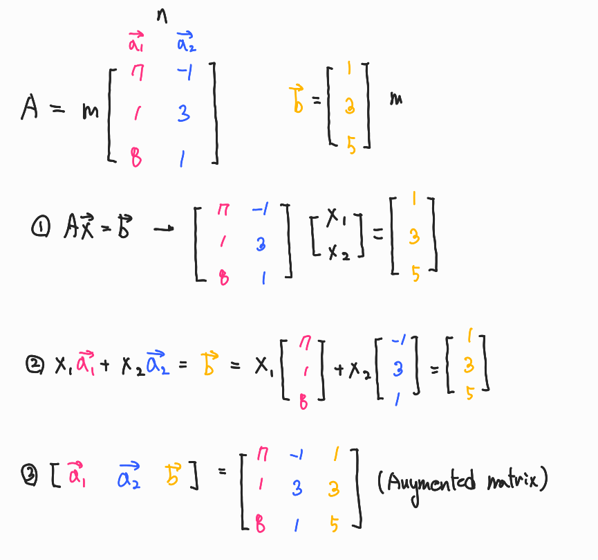 - Rm space의 임의의 벡터 b는 A column vectors의 linear combination이다.