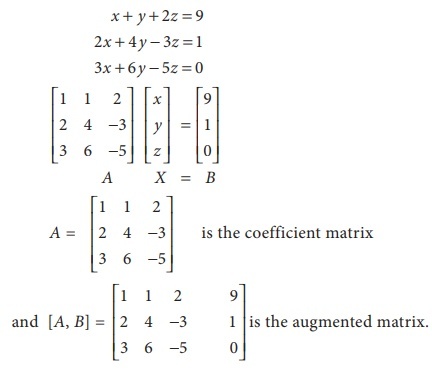 - Augmented matrix : linear system의 계수와 그 값을 떼어 matrix형태로 나타낸 것