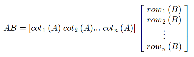 Matrix A가 m*n이고 B가 n*p라고 하자. 이때 AB는 다음과 같이 나타낼 수 있다