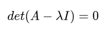 - Characteristic Equation : 임의의 n * n Matrix A를 생각해보자, 임의의 값 λ가 Matrix A의 EigenValue를 만족할 때, λ는 characteristic Equation을 만족하고, characteristic Equation는 다음과 같다.