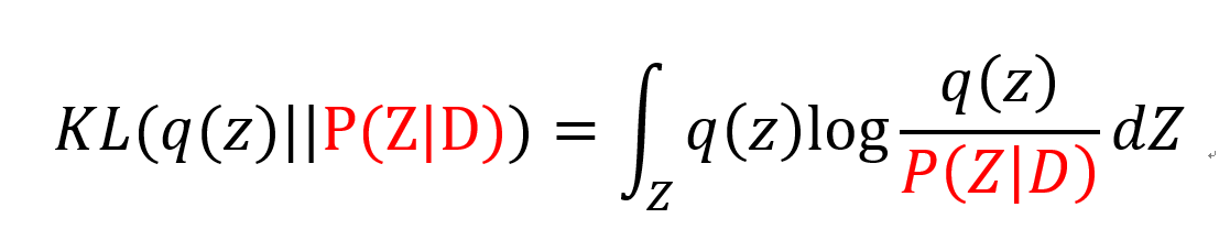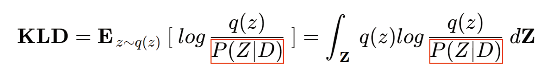 이제 KLD를 우리 문제에 맞게 q(z)와 P(Z|D)에 적용해보면 다음과 같은 식이 된다.
